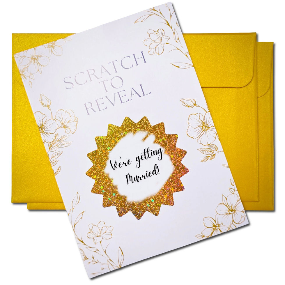 - BRIDE TO BE CARD - There's nothing more exciting than announcing "We're getting married" We've got you covered on making this an exciting reveal moment with these scratch to reveal cards with envelopes.